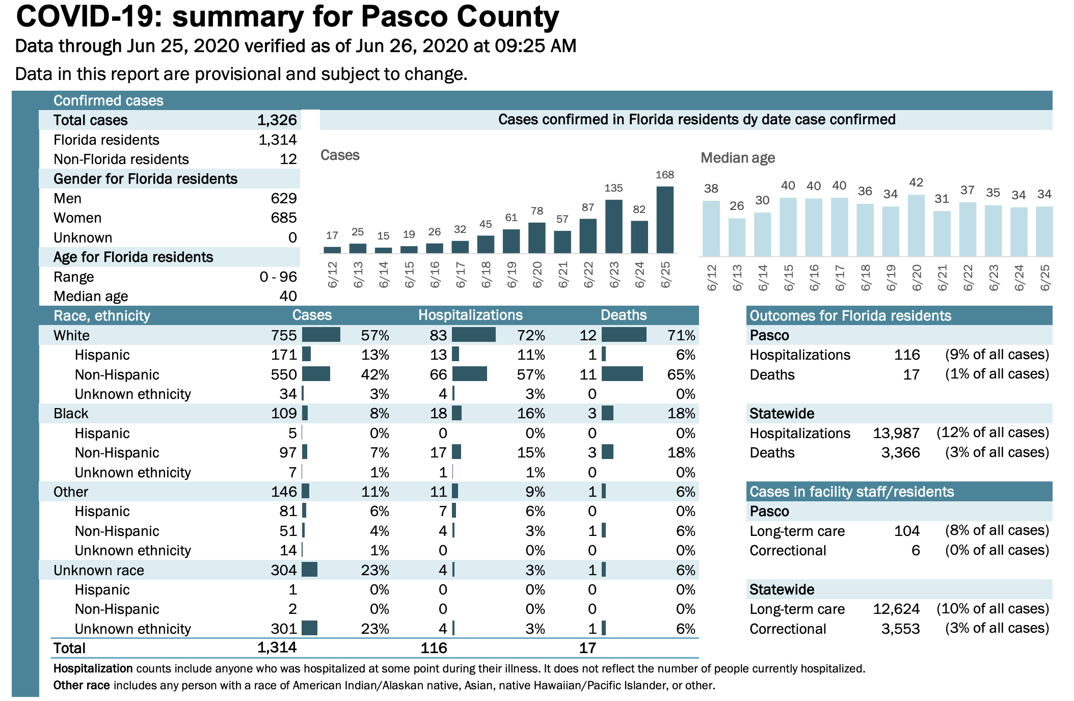 COVID-19 Update for Wesley Chapel 6/26/2020 (Source: FLDOH)