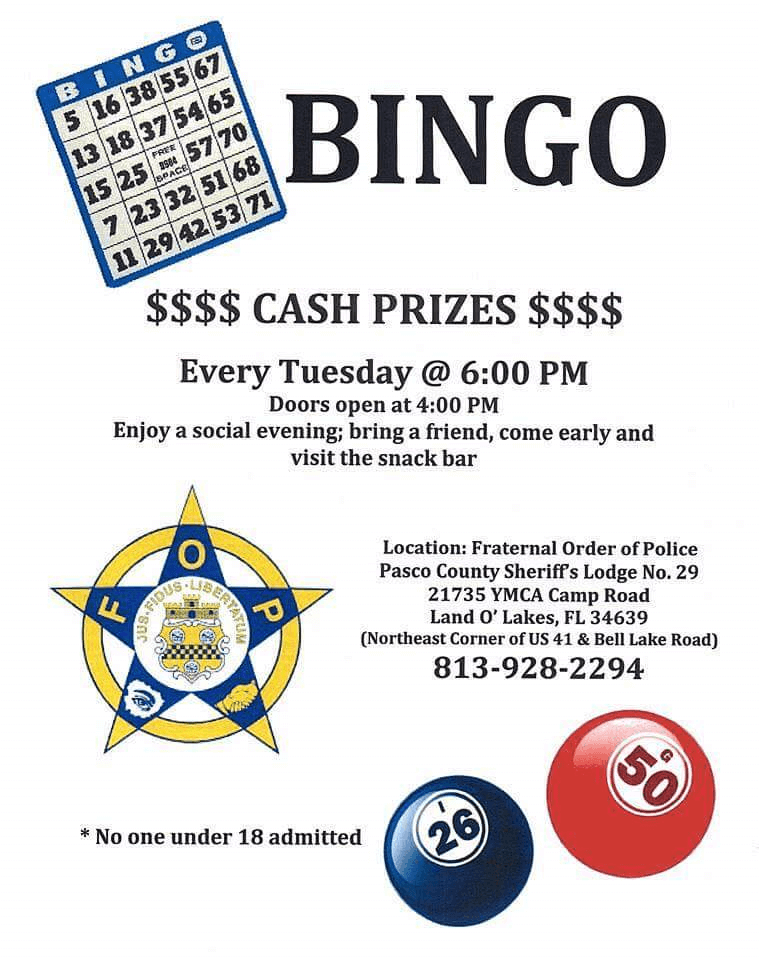 “Our Tuesday night Fraternal Order of Police Bingo in Land O’Lakes will be donating this nights profits on December 5, 2017 to Deputy Chris Fern and his Family. Deputy Fern was seriously injured in an off duty vehicle crash. Deputy Fern has worked for the Pasco Sheriff’s Office for apprx. 3 yrs and now will have a long recovery ahead of him from his injuries. With the enormous mounting medical expenses we are asking for our Community to show their support and help out for someone who gave selflessly to protect us.