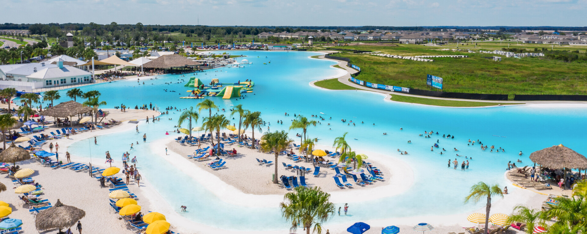 Epperson (Wesley Chapel): first U.S. Crystal Lagoon; about 7.5 acres; ~14.5 million gallons; beaches, slides, rentals, events.