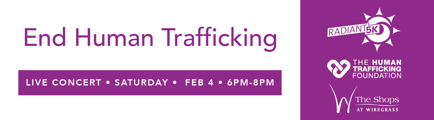 Wesley Chapel, FL — The Shops at Wiregrass is proud to partner with The Human Trafficking Foundation to support two signature events this January and February: The Radiant 5K and 1 Mile Fun Walk and the Light Up the Night Concert. These annual community events will bring awareness to the problem, raise funds for agencies that fight human trafficking, and support survivors.